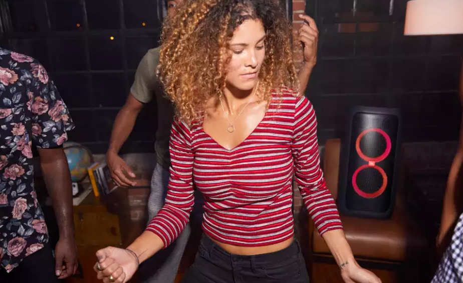 Портативная колонка JBL Party Box 100 благодаря мощному встроенному аккумулятору может проработать до 12 часов. Так что вполне способна обеспечить музыку от заката и до рассвета.